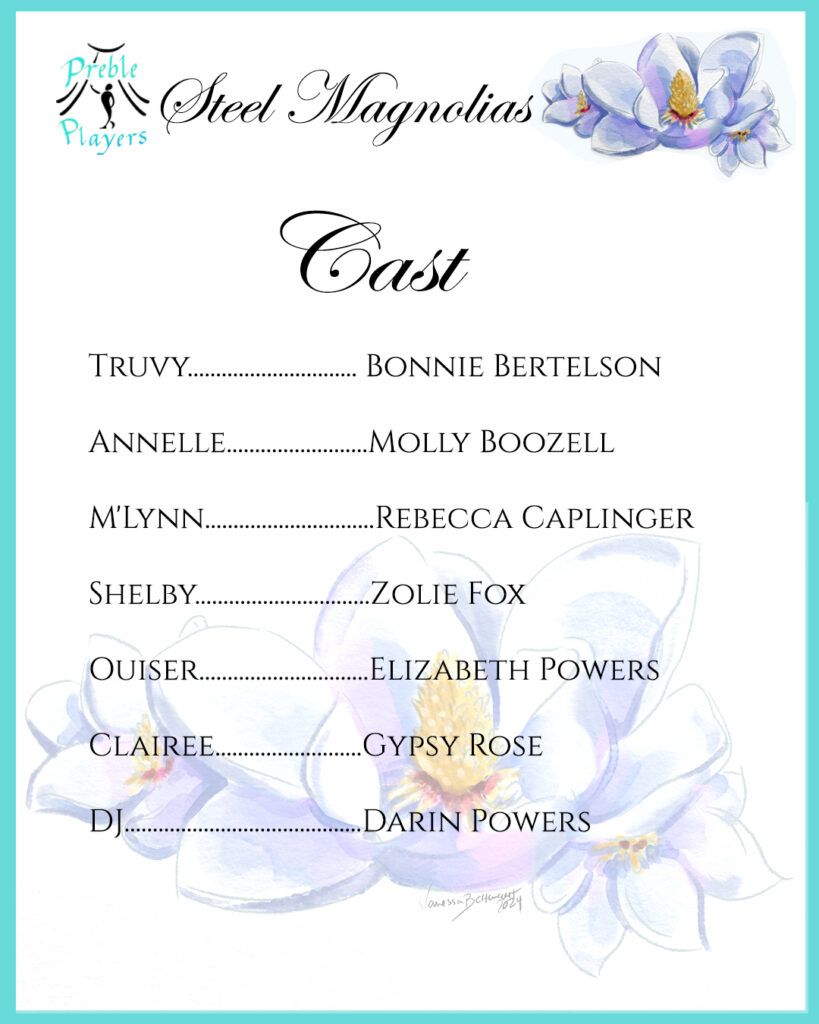 Preble Players Community Theatre is looking forward to presenting Steel Magnolias in August 2024 but first, a call for AUDITIONS! The audition packet and forms will be available at the door day of the auditions. Want to get a head start? Click on the image to download/print out the packet; bring your completed form with …